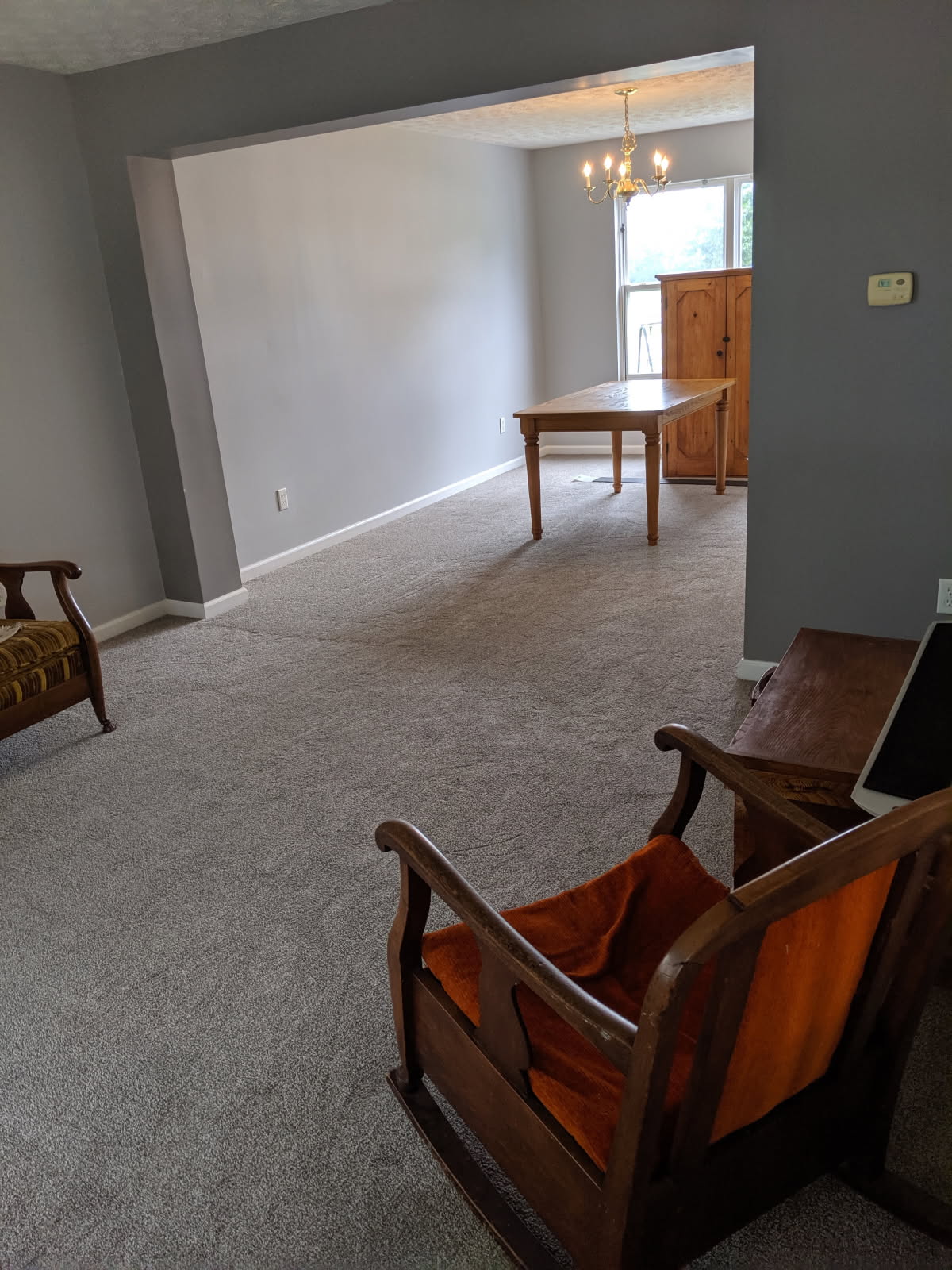 This kitchen was really a 12’x15’ room and the dining room was around 12’x12’. The owners have a very large family and gathering in just the kitchen wasn’t working. The goal was to remove the wall that the stove is on and open the kitchen into the dining room. So, the scope of this remodel became quite extensive. The flooring was being saved in the existing kitchen area. All the cabinetry was going to be removed (some reused as storage in the basement), the carpet in the dining room, and the wall removed. All of the appliances were being relocated (which means water lines, drains, and electrical all had to be relocated.