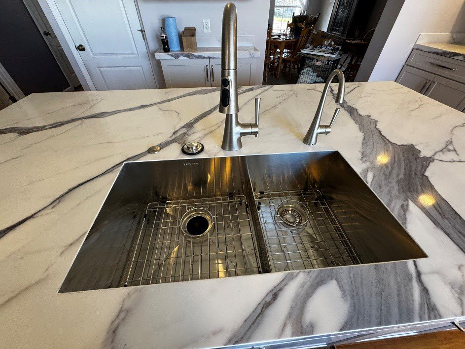 The sink utilized isn’t a standard undermount sink. It has a rail that trims out the quartz where the sink cut out is. It creates a nice transition between the sink and the top.